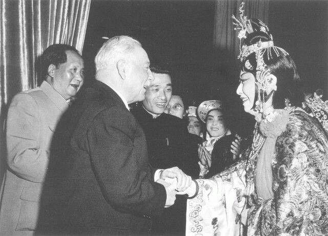 В-третьих, в одном из эпизодов Мао Цзэдун и Чжоу Эньлай посещают пекинскую оперу. Мао Цзэдун общается с актёром Мэйем Ланьфаном — это один из четырёх величайших актёров пекинской оперы. Кроме того, что он был всемирно известным актёром, он также обладал весьма прогрессивными взглядами. Писал оперы на такие темы, как засилье коррупции, вмешательство империалистических держав в жизнь Китая, о месте женщины в обществе. В 1935 г. посетил с гастролями СССР, на его выступлении присутствовали Сталин, Ворошилов, Станиславский, Немирович-Данченко, Эйзенштейн, Брехт. После начала японской оккупации Китая в знак протеста оставил сцену и подвергался преследованиям. Вернувшись к выступлениям, ещё три раза посещал СССР. Ворошилов в 1957 г. смотрел в Пекине его оперу. В 1959 г. Мэй Ланьфан вступил в КПК. Большой театр Пекинской оперы носит имя Мэй Ланьфана.