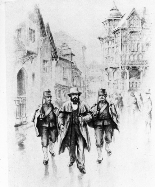 …Был уже поздний ночной час, и подготовка к отъезду шла полным ходом. Маркс и Женни отбирали книги, рукописи, которые надо взять ему с собой, служанка хлопотала с вещами. Вдруг за дверью послышался топот, говор, в дверь постучали.