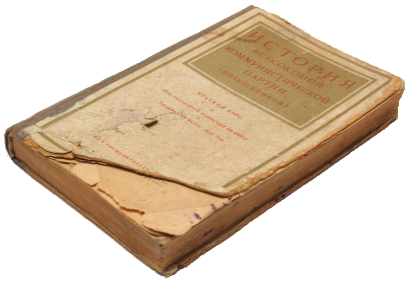 В Музее Ленина вы можете видеть очень интересный экземпляр «Краткого курса» истории ВКП(б), пробитый пулей, — в нём застряла пуля. Танкист возил с собой «Краткий курс» истории ВКП(б) и, очевидно, в перерывах между боями изучал историю партии: это давало ему силу для борьбы в самой трудной обстановке. Он не полагался на броню только своего танка, на пушку, которую возил этот танк: он считал необходимым вооружить себя знанием истории партии, идейно сохранить себя для борьбы с врагом.